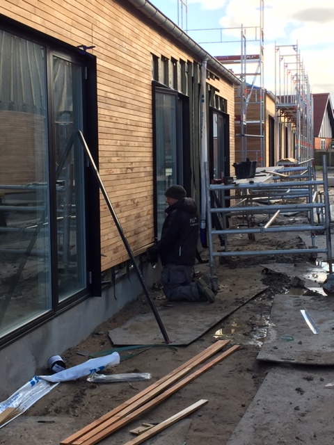 - PLE udførte følgende entrepriser: Tømrer- og Snedkerentreprisen, Inventar, Facadebeklædningsentreprisen og Tagdækningsentreprisen Entreprisen omfatter 5 rækkehuse med 6 boliger i hver. Opgaven indebærer blandt andet flg.: • Montering af gipsvægge omkring toiletter og som lejlighedsskel • Montering af laminatgulve • Montering af køkken og teknikskabe • Levering og montering af vinduer og døre • Montering af facadebeklædning med profil-trælister i teaktræ • Tagpap i en varmtagsløsning med 100 mm isolering på sandwichelementer