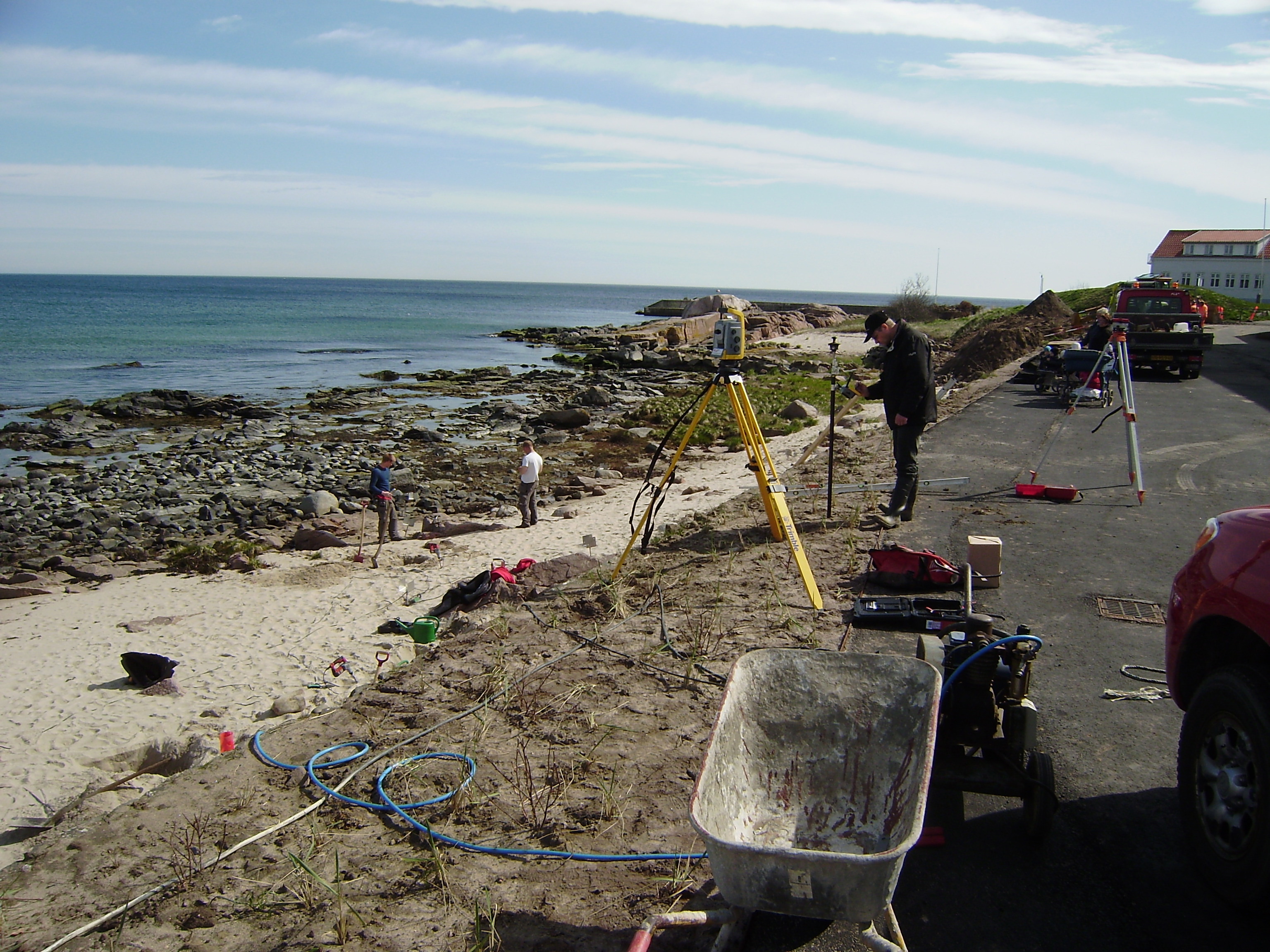 - Entreprisen bestod i rydning af alle eksisterende beplantninger, bænke belægning m.m. Udskiftning af eksisterende regnvandsledninger, nye dræn, etablering af nye planteområder og ny asfaltbelægning på hele Strandpromenaden. Endvidere blev der udført træstier i klitområder, 150 m buet træbænk, ca. 250 m2 promenadedæk incl. værn og trapper. Samt et nyt omklædningsrum. Herudover udføres ny belysning på hele arealet.