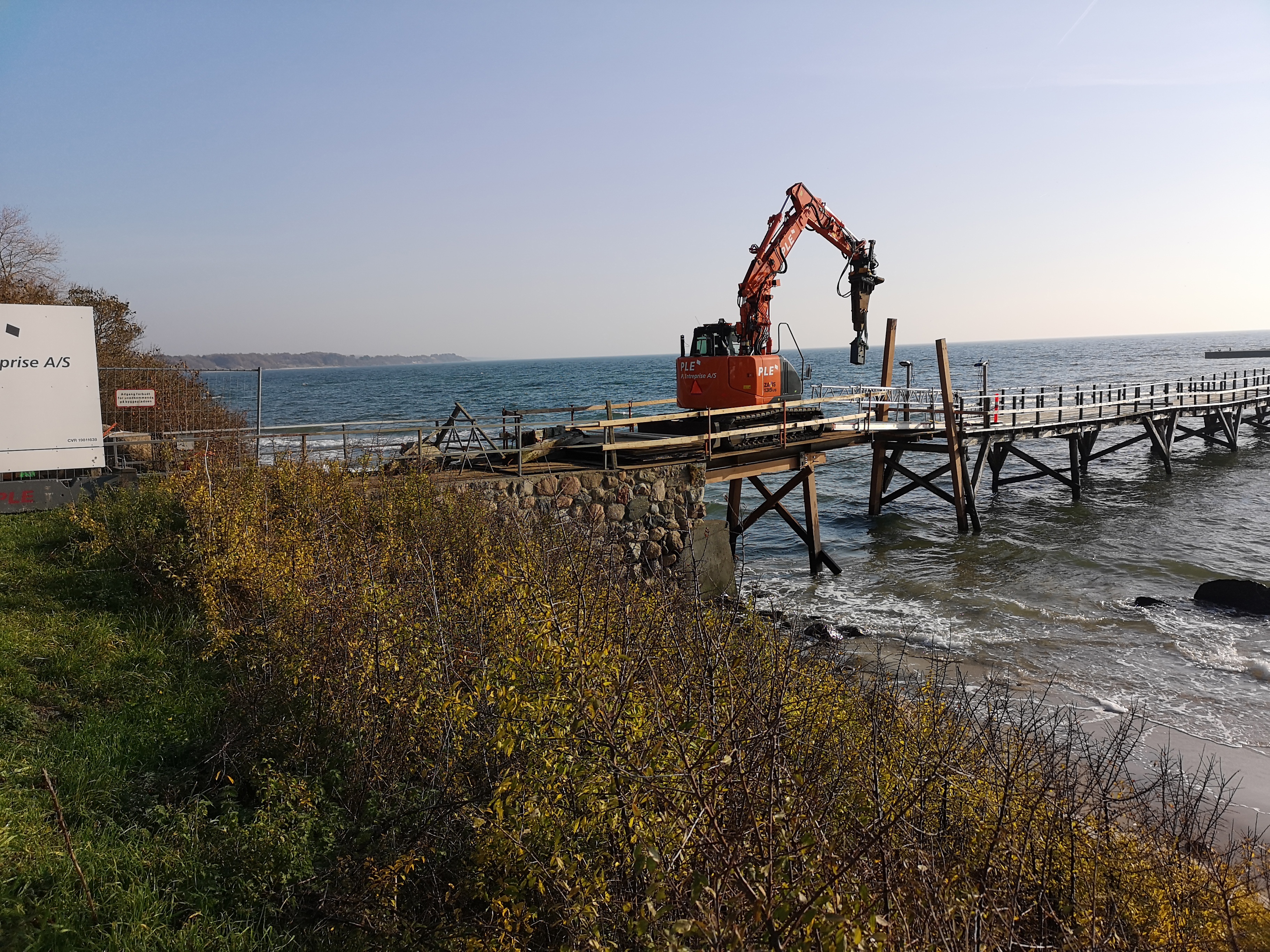 - Fjernelse af eksisterende bro og etablering af ny træbro udført i Azobe´træ. Broen til Arnager Havn er Nordeuropas længste træbro over havvand. Opgaven udføres ved at udskifte fag for fag fra landsiden. Nye Azobe´pæle rammes i havbunden - efterfølgende monteres ny afstivning, bjælke, plankedæk og gelænder. Alt udføres i Azobe' træ. Den eksisterende bro er 200 meter lang og bygget i 1884.